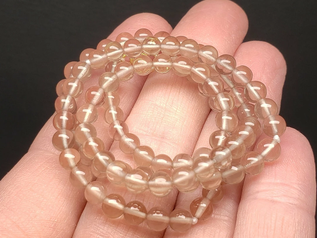 This necklace shows hue of champange with subtle touch of reds & greens.