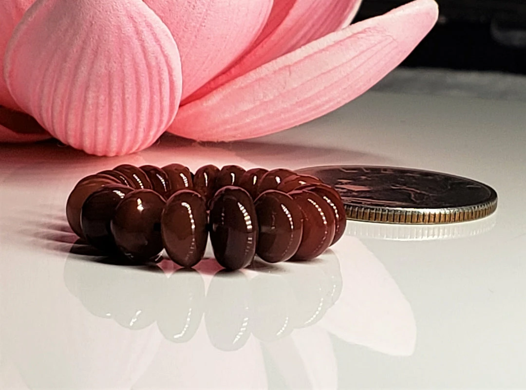 The colors range from peach-ish, reddish and greenish but all fulfill the mission of the gem. It is suggested to select the one which appeals the most as this will indicate which one you will receive the highest benefit. Each individual bead flashes colors of gold or blue in addition to its outer multi-colored appearance which can create dimensional portals when used with focused intent.