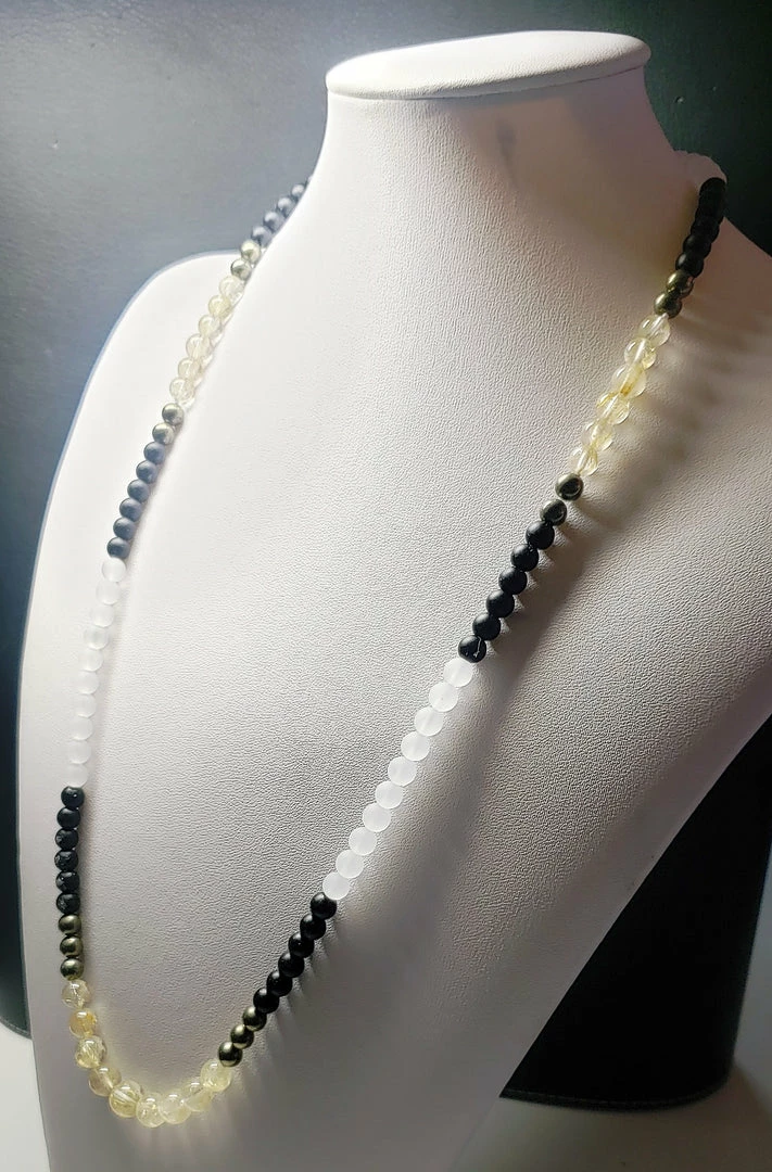 The elements for this necklace are hand selected for their balance and harmony with one another.The elements are them weighed and priced according to their weight.The quality of each necklace is the same, just the element weights vary.