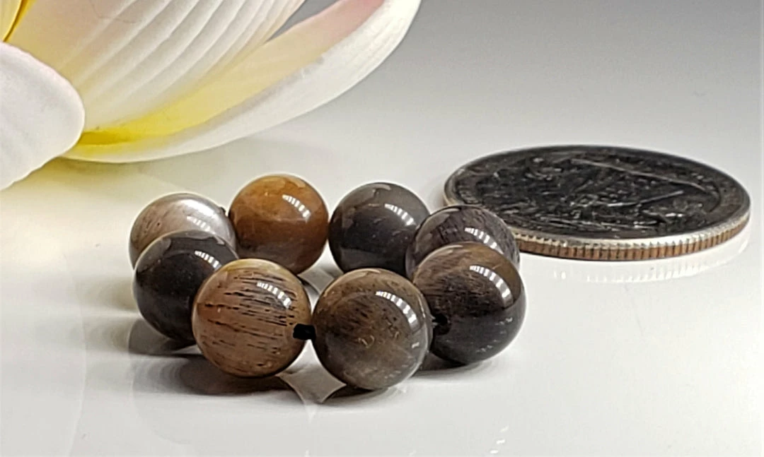 Recently a natural occurring combination of Sunstone and Moonstone has been found.ย As of yet, a new name for this gem hasnโt been made we areย simply referring to as Sunstone/Moonstone – naturally grown.ย Nearly each bead has the beautiful “flash” that feldspars are known for making each necklace extremely unique.