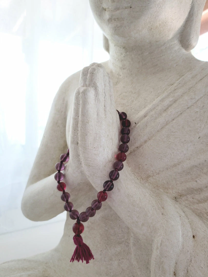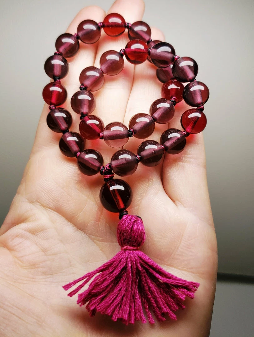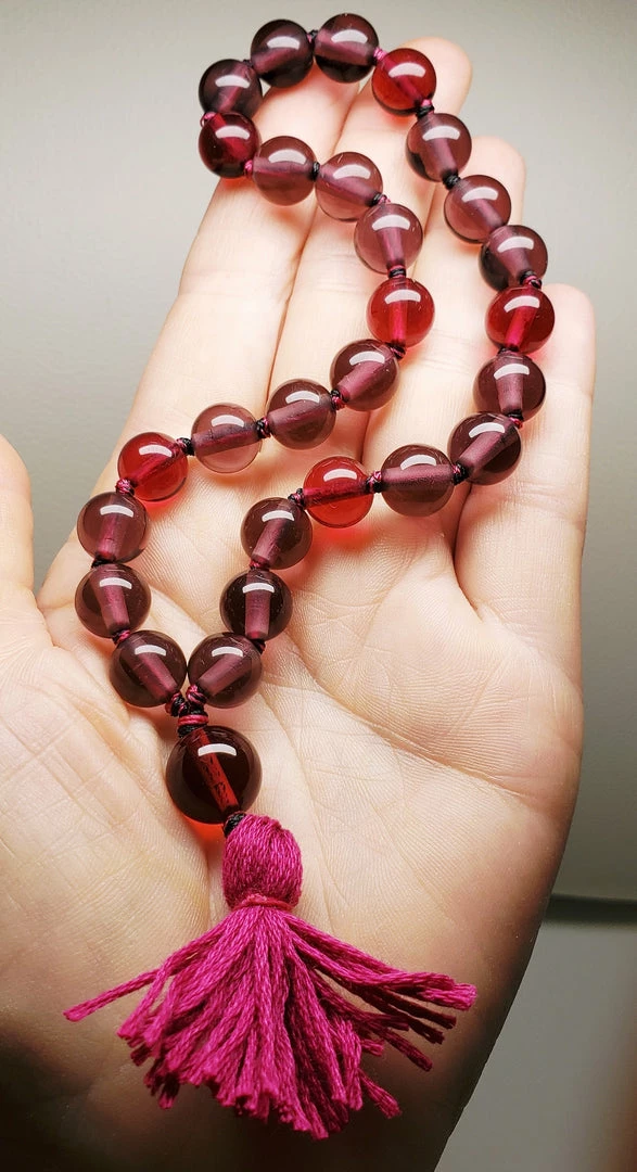 called the “guru bead.” This bead hangs perpendicular to the circle of counting beads.