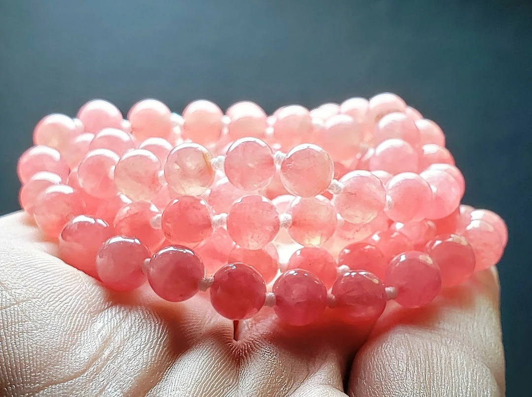 Rhodochrosite is a gem for those who want to respond to life’s situations rather than react. It raises the user’s vibration to a higher level bringing one more in alignment with the true essence (higher self) while assisting to maintain this level. Through this, the emotional patterns being not of a higher vibration break up. Rhodochrosite not only initiates but does clearing of the emotional aspect.