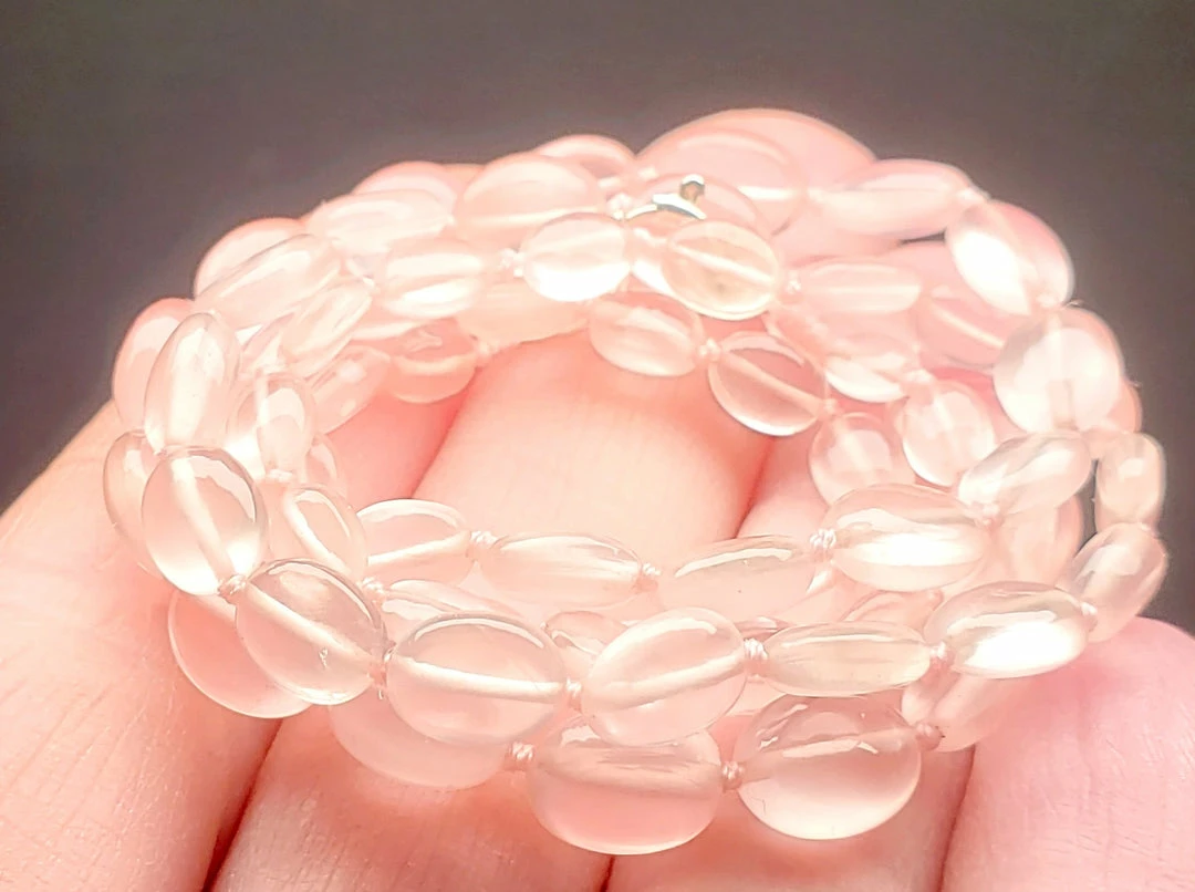 The following Rose Quartz strands carry a different, high frequency than typical Rose quartz. They have a stronger level of candescence and high brilliance which brings a different caliber and higher aspect of healing.