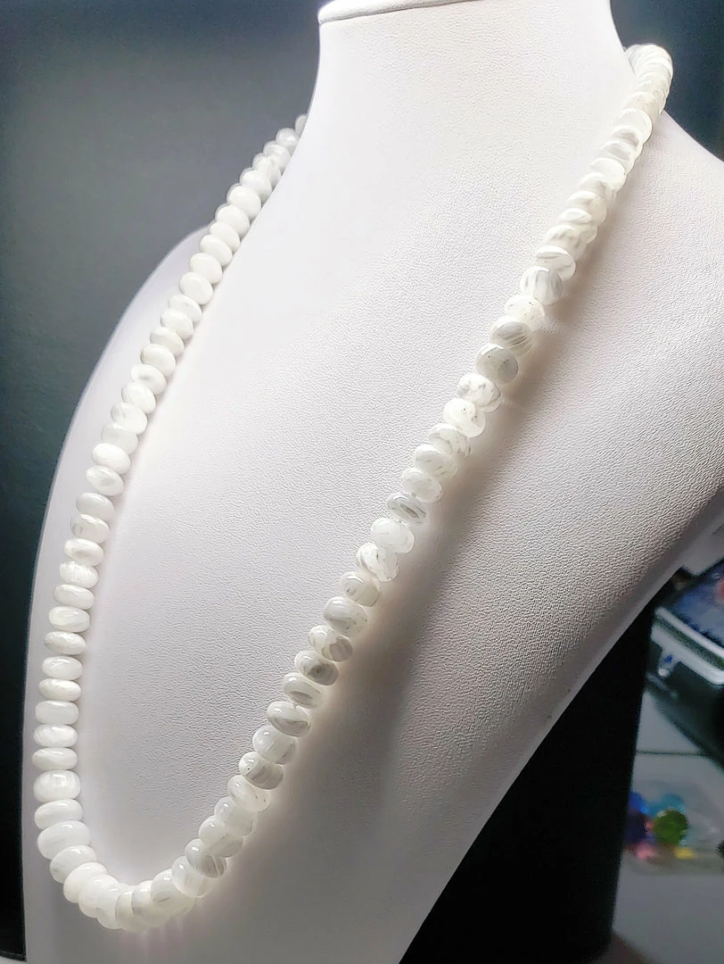 Scolecite is generally found as an opaque gem.The necklaces we are offering all have at least translucency leading to transparency. The higher the grading the more light comes through the gem.