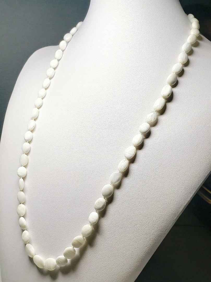Scolecite is generally found as an opaque gem.The necklaces we are offering all have at least translucency leading to transparency. The higher the grading the more light comes through the gem.