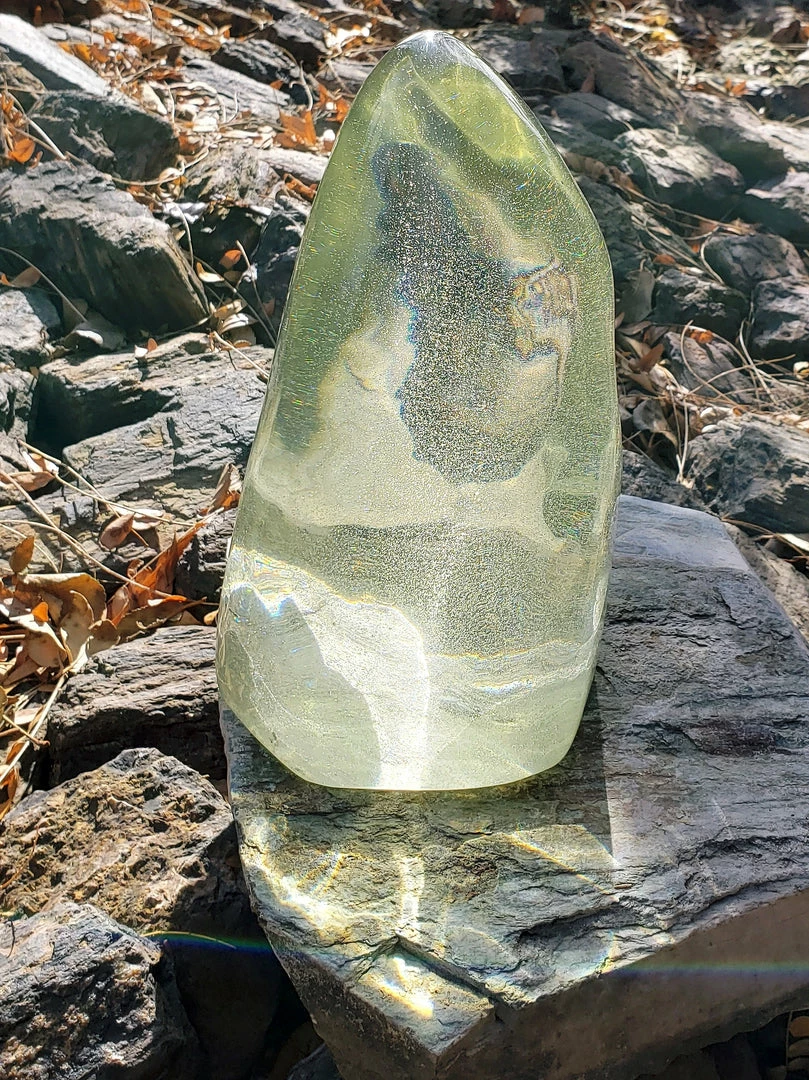 They possess a very high atomic spin rate which translates as a high vibrational energy.ย This vibrational energy can be passed onto another object, person, place or thing when used with intention.ย They also mimic light photons – so they can seem to appear or disappear, in and out of existence.
