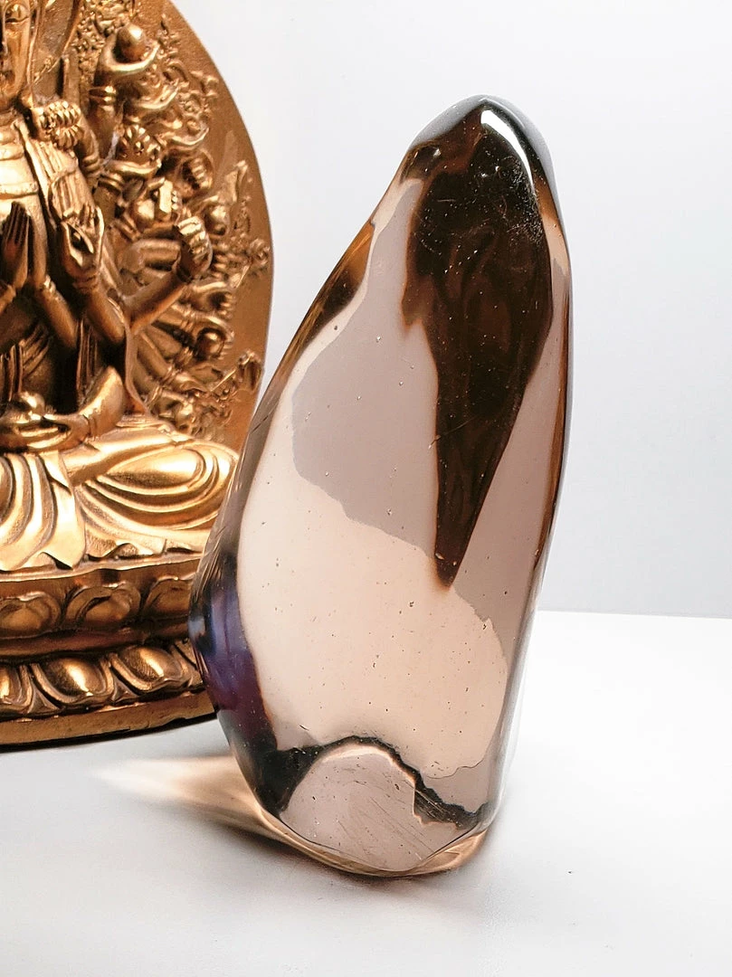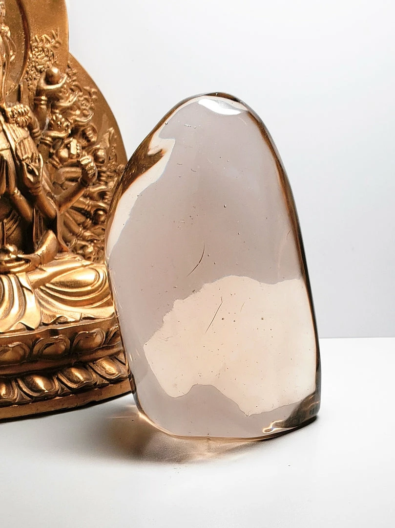 This color of Monatomic Andara crystal has chosen the name Desert Rose. The color of beige pink in larger specimens to very light clear peach pink in smaller sizes, filled with light and shifting colors from pink to peach to light purple, it radiates a calm Zen like clarity.