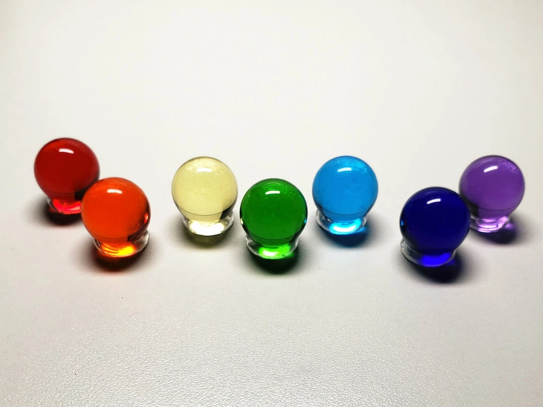 ย – one set of seven in andara crystal 16mm undrilled spheres in colors which correspond to the chakras – spheres are made from authentic monatomic andara crystals